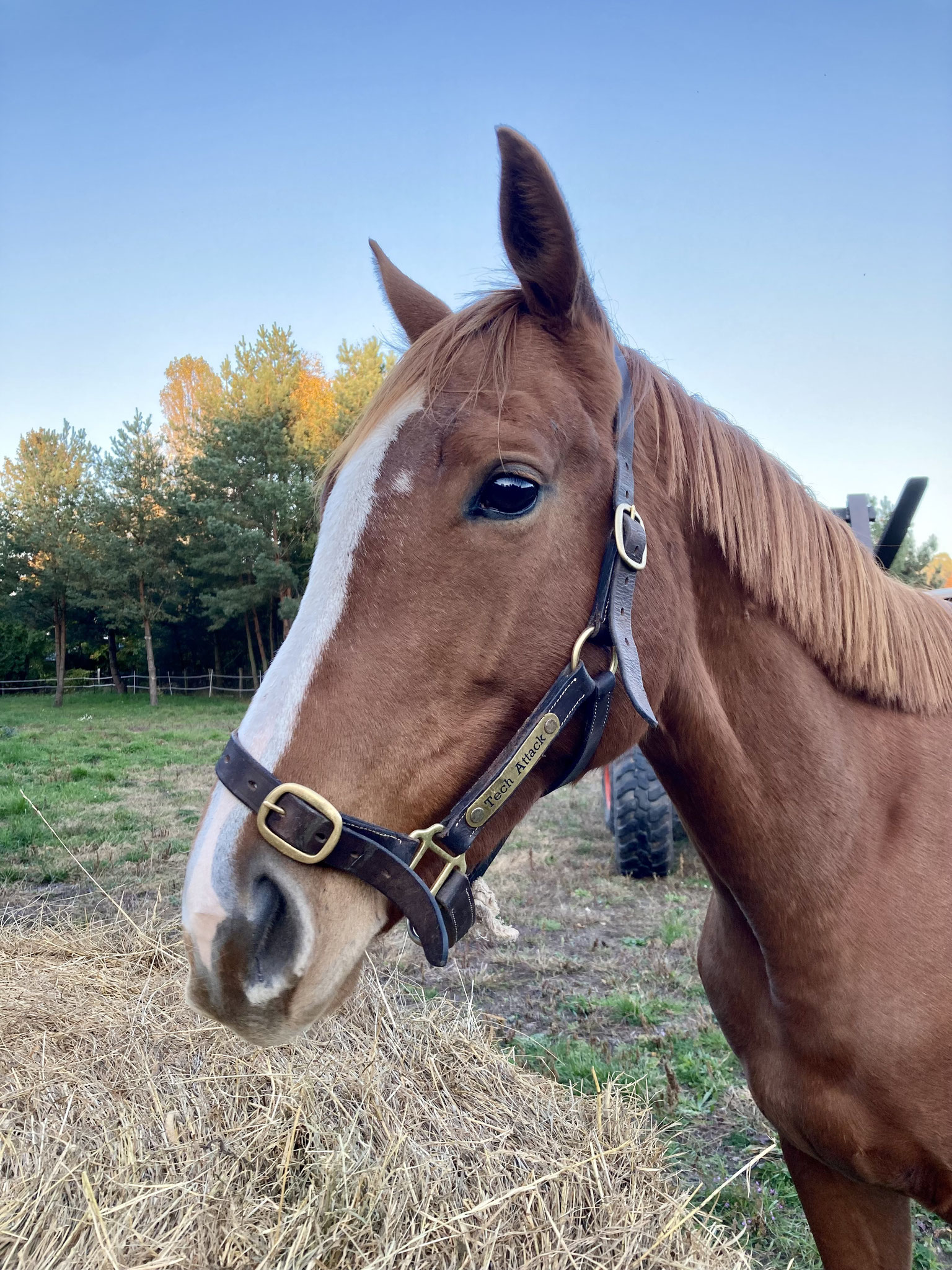 Tech Attack ist eine einfühlsame und unerschrockene Stute, die sich gern dem Menschen anschließen möchte. Bei uns im Stall ist sie mit ihrer sanften und entspannten Art der Liebling für